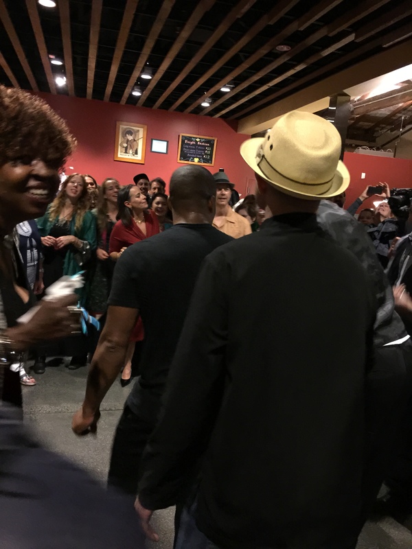 Prompt: What's happening here? What kind of music are they creating? What kind of action might take place in this setting? Why did the woman turn around? When she looks behind her, what does she see? Why is the man wearing a hat? Set the timer for 10 minutes. Go!