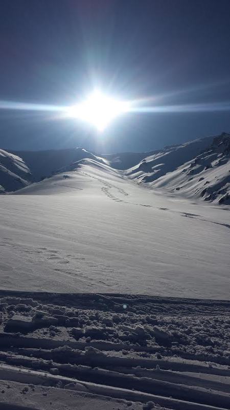 Prompt: Whose ski tracks are these? What kind of skiers skin and ski this far from a gondola? Why have they come to these mountains? Today, they spot a snow leopard. What did the leopard do when it saw the skiers? What did the skiers do?
