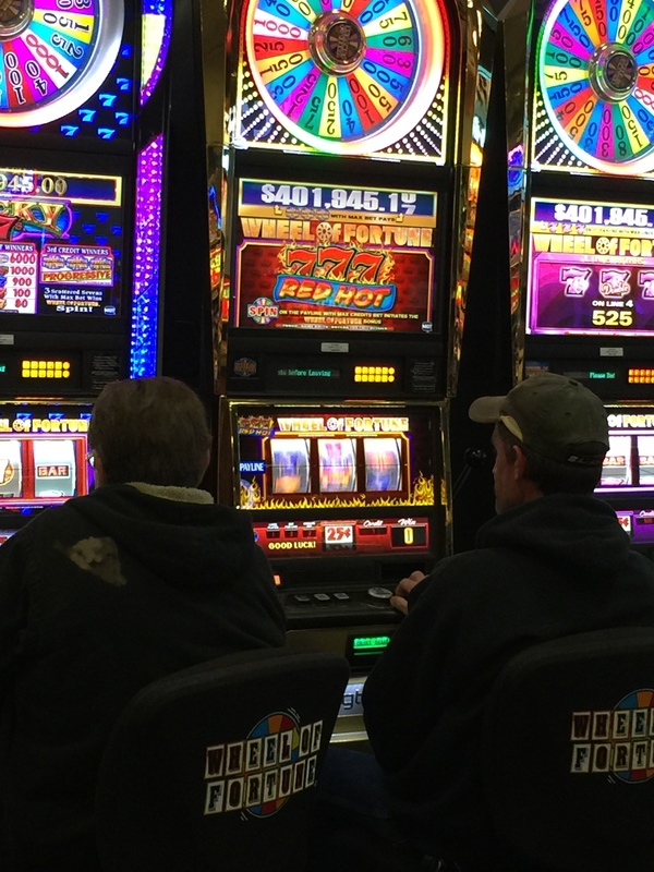 Prompt: On the first day of snowfall, what prompted these men to play slot machines? What do they hope to win with their windfall? Pick one detail from each of their lives that sets up this moment.