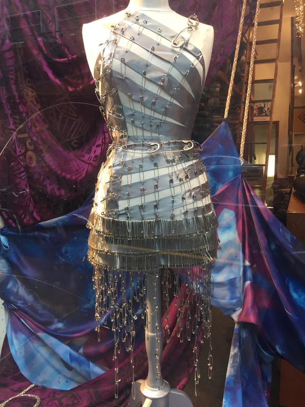 Prompt: "Dressed in safety pins and ribbons, she…"